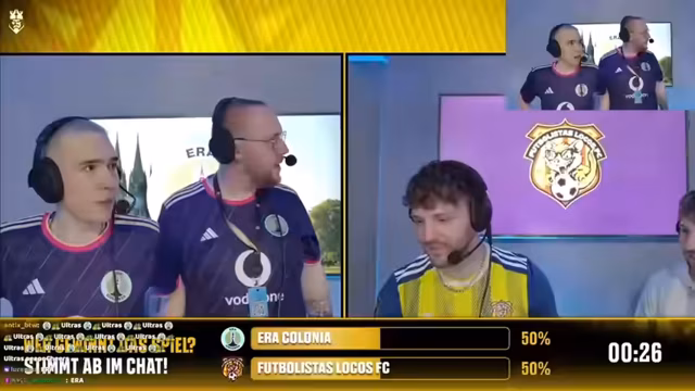 02:54:26Obwohl ERA Colonia im Penalty-Schießen stark vertreten ist, unterliegt man letztendlich den Footballistas Locos. Der Streamer bezeichnet die Niederlage als verdient, da zu viele Chancen nicht genutzt wurden. Trotzdem bleibt die Stimmung fair, und das Team bekommt für den Kampf Applaus. Der Traum vom direkten Einzug nach Paris ist geplatzt, doch eine zweite Chance in einem anstehenden Spiel gegen G2 besteht.