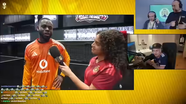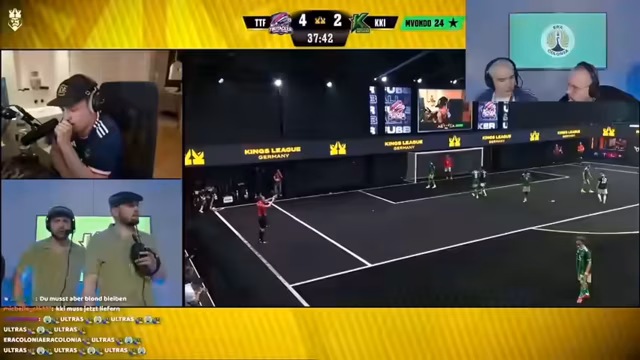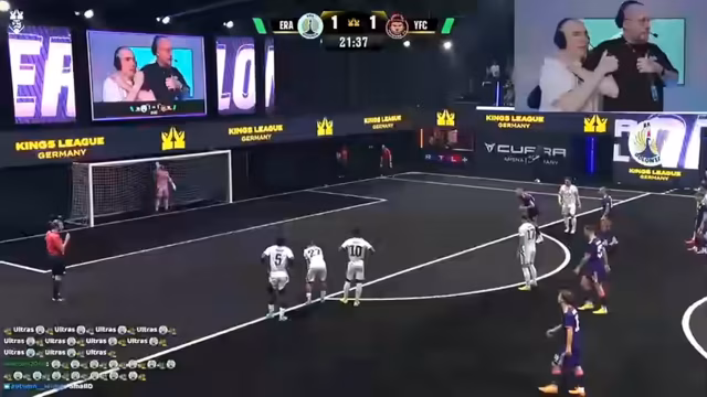 01:38:48Nach einem intensiven Spiel mit vielen Höhepunkten und Emotionen, steht es 2:2 zwischen Tiki-Taka und Kaktuskickers. Der Streamer äußert seine Unterstützung für beide Teams, betont aber die besondere Verbindung zu Kaktuskickers. Gleichzeitig wird das bevorstehende Spiel von Era Cologne angesprochen, das in Kürze beginnen wird.