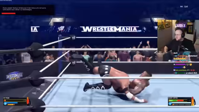 05:17:38Während desMatches gegen Randy Orton steigt die Frustration des Streamers über die hohe Schwierigkeit und die häufigen Konter des Gegners. Er unterbricht den Stream, um den Schwierigkeitsgrad zu senken, und diskutiert anschließend die WWE-Dokumentation auf Netflix. Er betont den Respekt vor den Athleten, die einen Hochleistungssport betreiben und sich dabei hohe Verletzungsrisiken aussetzen, und bezeichnet das Wrestling als 'unglaublich respektabel' und 'geiles Entertainment'.