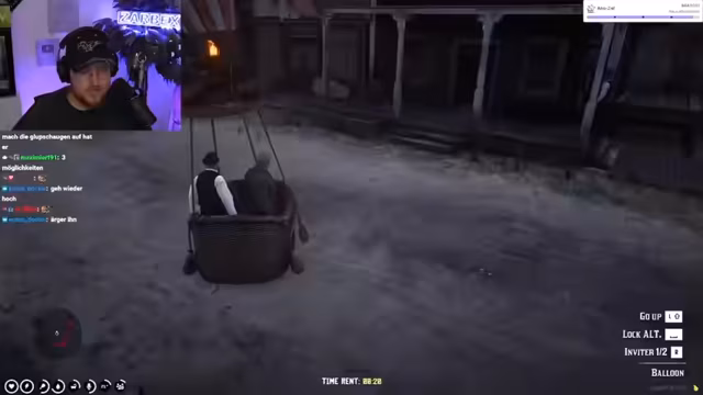 03:12:53Die beiden steigen in einen Heißluftballon ein, um gemeinsam eine Reise zu unternehmen. Die Fahrt verläuft jedoch chaotisch und von technischen Schwierigkeiten geplagt. McDotter hat Schwierigkeiten, den Ballon zu steuern, was zu gefährlichen Manövern und fast einem Absturz führt. Während des Fluges wird der Ballon von einem unbekannten Reiter beschossen, was die bereits angespannte Situation weiter verschärft.