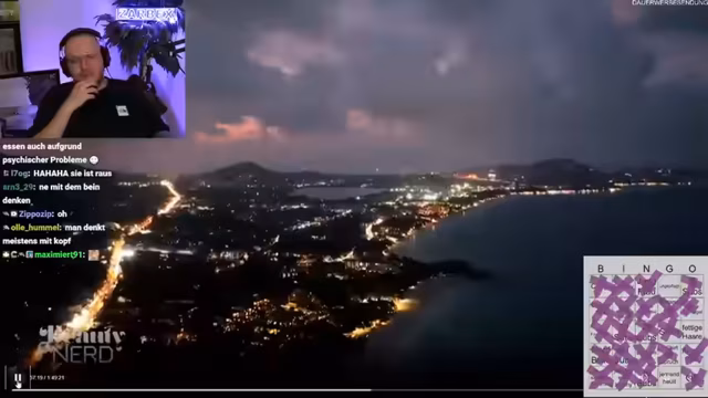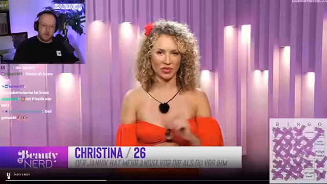 02:40:18Während des Streams interagiert der Streamer intensiv mit seinem Chat, begrüßt Unterstützer und löst ein Bingo-Spiel, bei dem es um verschiedene Ereignisse in der Tinder-Show geht. Er kommentiert die Teilnehmer der Show, äußert seine Vorlieben über Aussehen und Charakter in potenziellen Partnern und diskutiert über Beziehungen. Er zeigt sich humorvoll und spontan, während er die Zuschauer unterhält und auf verschiedene Kommentare und Reaktionen aus dem Chat eingeht.