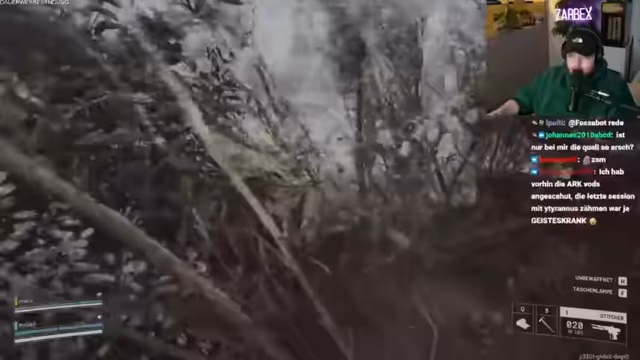 06:21:36Der Stream startet mit der Vorbereitung auf den Einsatz in einer Höhle, in der es riesige Roboter und wie Godzilla anmutende Monster gibt. Der Streamer plant, gemeinsam mit seinem Dino zu kämpfen und gibt diesem Anweisungen. Anschließend beschäftigt er sich mit dem Aussehen und den sportlichen Fähigkeiten von Streamern und wird dabei von Chatbeiträgen zu seiner eigenen Attraktivität unterhalten, was zu humorvollen Einwürfen führt.