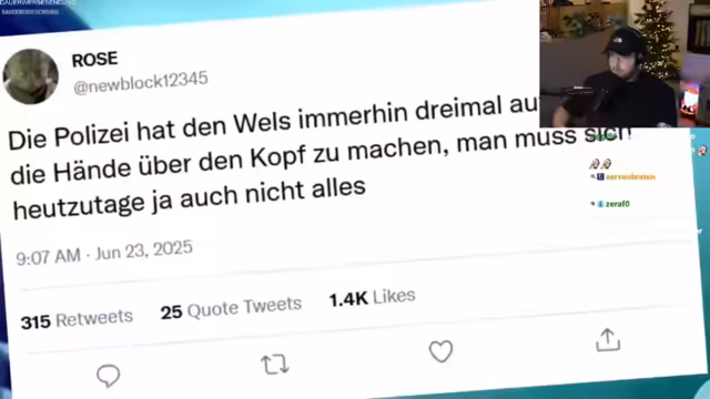 00:45:17Der Streamer analysiert, wie die deutsche Sprache in Medien den Wels-Vorfall beschreibt, und findet es beeindruckend, wie kreativ die Formulierungen sein können. Er kritisiert auch Medien wie die Bild, die für den Vorfall verantwortlich machen, anstatt die Situation zu hinterfragen. Der Streamer teilt auch seine Ansicht über Zoos, die er als inhuman betrachtet, da Tiere in zu kleinen Gehegen gehalten werden.