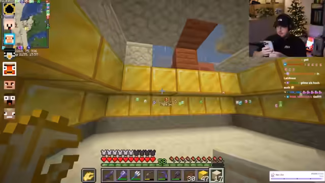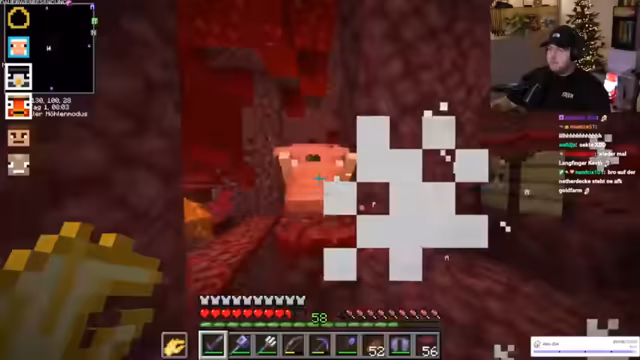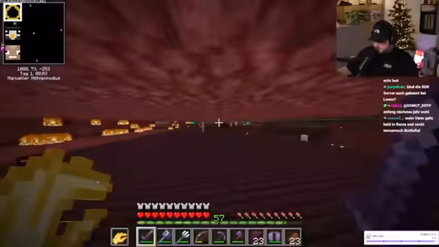 02:15:52Der Fokus des Streams liegt weiterhin auf dem Gameplay in Minecraft. Der Streamer arbeitet an dem Bau eines Shops mit einer Vorlage, was er als anspruchsvoller als Freestyle-Bauung beschreibt. Es finden Gespräche über Wither-Farmen und die Notwendigkeit von Goldblöcken für einen Beacon statt. Dabei diskutiert er alternative Strategien, wie die Farmung von goldenen Karotten über Dorfbewohner. Währenddessen kommt es zu einem Zusammenbruch der Nether-Fortschritte, was zu einem abrupten Wechsel in der Gameplay-Strategie führt.