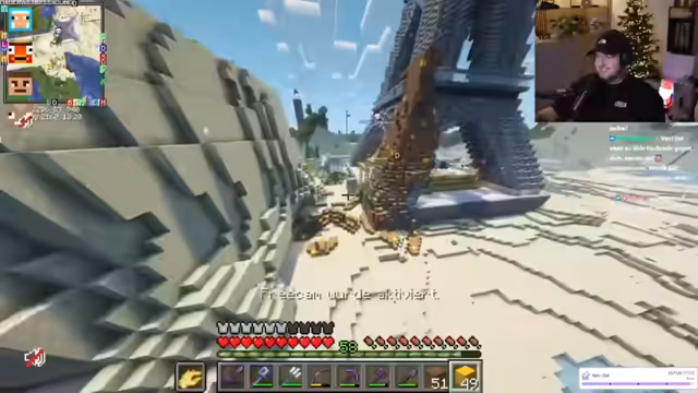 04:30:21Der Stream verlagert sich auf den Bau eines gigantischen Eiffelturms, für den der Chat Dreck und weiteres Baumaterial fordert. Parallel dazu wird das Projekt eines futuristischen Futternagels mit Joe Craft verfolgt, bei dem eine Flying Machine mit Redstone-Blöcken entwickelt werden muss. Das Bauvorhaben erfordert präzise Abstimmung und Teamwork, da die Technik komplex und die Ressourcen knapp sind. Der humorvolle Umgang mit technischen Hürden und der Wette mit Schradin, wer den Turm zuerst abbaut oder sprengt, bereichert den Stream.