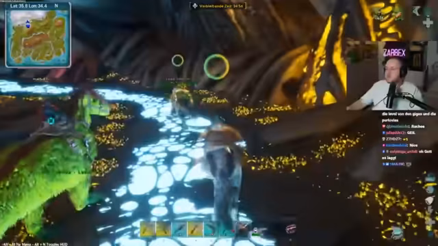 05:51:02Das Team ist bereit und betritt die vulkanische Tech-Höhle. Der Weg ist instabil und ruckelt stark, was die Navigation erschwert. Die Spieler müssen eine Schlange aus Dinos bilden, um sicher den Einstiegsbereich zu passieren. Die Zeit drängt, da die Tür sich bald schließen wird. Es herrscht eine angespannte, aber entschlossene Atmosphäre, das Ziel ist klar im Fokus.