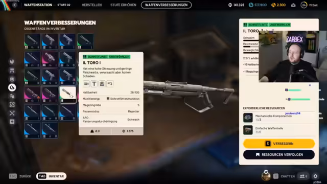 01:04:43Der Streamer widmet sich dem Thema der Waffen-Upgrades in Arc Raiders. Er fragt die Community, ob es sich lohnt, Waffen niedriger Stufen zu upgraden oder ob man direkt bei höheren Stufen beginnt. Die Zuschauer geben ihm den Rat, dass es vom Zustand der Waffe abhängt und dass alles über 80% Zustand upgradet werden kann. Er experimentiert selbst und kommt zu dem Schluss, dass manche Waffen wie die Veneta nach dem Upgrade stärker sind. Er favorisiert die Kombination aus einer Anvil-Pistole für die Distanz und einem El Toro-Shotgun für den Nahkampf, da diese für ihn eine sehr effektive und unterhaltsame Waffenkonfiguration darstellt.