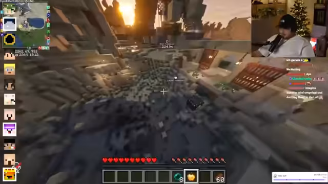 06:41:24Eine neue Dynamik beginnt, als ein Spieler namens Schradin seine voll ausgerüstete Rüstung und seine Ausrüstung an einen anderen Spieler namens Neusi verschenkt. Dies löst bei dem Streamer, der selbst obdachlos ist, einen Wutausbruch aus. Es kommt zu einem Streit, in dem der Streamer die anderen Spieler beschuldigt, ihm alles genommen zu haben und seine Basis, darunter eine sieben Stunden gebaute Pyramide, mehrfach mit TNT gesprengt zu haben, was zu einem großen Krater führte und ihm seine gesamten Habseligkeiten kostete.