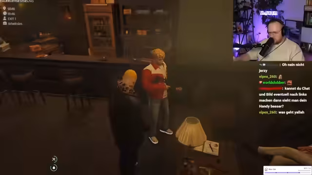 08:44:05Nach der emotionalen Konfrontation mit Jersey und dem Auftauchen der neuen mächtigen Figur stabilisiert sich die Situation. Der Streamer unterbricht kurz das Rollenspiel, um dem Chat die Technik hinter der Zensur von bestimmten Wörtern zu erklären. Dann kehrt er zurück zum Geschehen. Jersey wird klar gemacht, dass sein Wert als Mensch null ist und er nur sein Geld schuldet. Es werden brutale Methoden zur Durchsetzung der Forderungen angedroht. Gleichzeitig wird eine neue, unbekannte Macht eingeführt, die 40 Mann mobilisiert hat und deren Hilfe nun gefordert wird, um die Machtverhältnisse endgültig zu klären und die zu enttarnen, die die heimliche Kontrolle über das Viertel ausüben.
