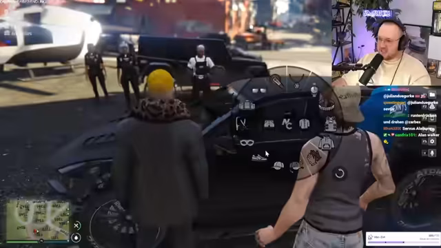 04:10:42Es wird ein Jackart-Stunt mit einem selbstgebauten Unfall gestartet, der plötzlich in einen Angriff mündet. Der Streamer ruft verzweifelt die Polizei, als er angeschossen wird. Parallel werden Spezialkarabinen für 4,5 Millionen angeboten und der Verkauf dieser Waffen wird als wichtiges Geschäft betont. Der Verkäufer gibt die Bedingung aus, nicht mit armen Leuten zu handeln, was seinen Status und die hohe Preisklasse unterstreicht.