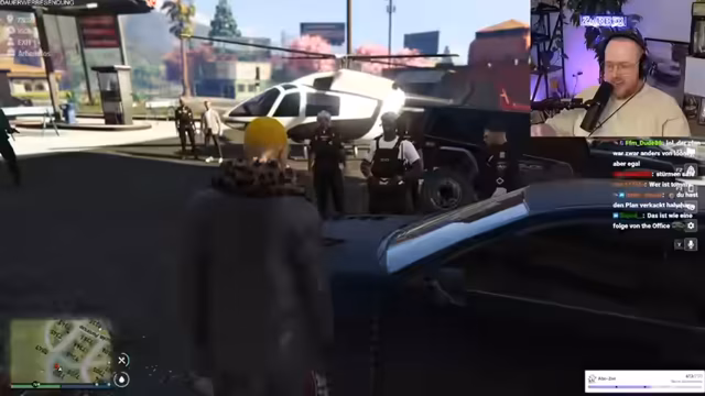 01:48:57Der Raubüberfall wird chaotisch und unrealistisch durchgeführt. Der Streamer und seine Komplizen, unter ihnen der dauerhaft gestresste Tommy, halten einen Angestellten der Tankstelle fest. Während die Polizei vor der Tankstelle auftaucht, wird die Situation immer bizarrer. Der Geiselnehmer wirft vulgäre Beleidigungen und unmögliche Forderungen wie 'Freisgeleit' in die Runde. Trotz der Anwesenheit der Polizei halten sie die Situation aufrecht, der Streamer droht der Geisel mit Gewalt und Tommy macht sich durch sein Verhalten verdächtig. Der Plan droht völlig zu eskalieren, anstatt erfolgreich umgesetzt zu werden.