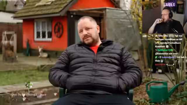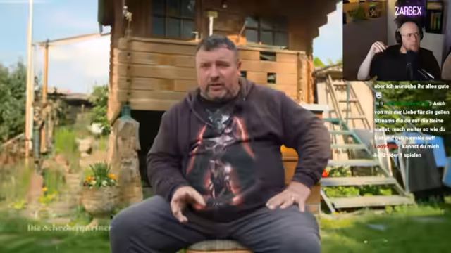 02:03:37Im Stream werden persönliche Rituale und humorvolle Andeutungen über den Verlust der Herrlinge und den damit verbundenen, mysteriösen Bartwandel geteilt. Plötzlich taucht Gisela, die resolute Obfrau der Gartenanlage, auf, was zu einer turbulenten Konfrontation führt. Sie unterbricht die Arbeiten und erinnert den Streamer verbindlich an die starren Regeln, insbesondere an die verbindliche Pause um drei Uhr, was für ihn völlig neu ist und den gesamten Zeitplan durcheinanderbringt.
