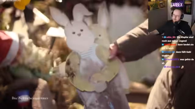03:36:24Der Streamer präsentiert eine Dokumentation über den Garten von Thorsten, einem Mann, der sich ganzjährig mit Osterdecoration, insbesondere Eiern und Hasen, beschäftigt. Thorstens Garten zeigt eine exzessive Ansammlung von tausenden Eiern und hunderten Hasenfiguren, die einen emotionalen Wert für ihn haben. Dies wird mit extremen Reaktionen aus dem Chat kommentiert, der die Deko sowohl als Kultstatus als auch als "too much" bezeichnet. Thorstens Gattin Gabi, genannt "Gabi", spielt dabei eine besondere Rolle.