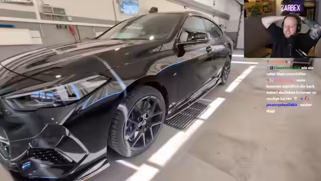 04:29:37Nach einer kurzen Überlegung zum Motto 'lieber Hubraum statt Wohnraum' beginnt Zarbex, die von Zuschauern eingesendeten Autos zu präsentieren. Er beginnt mit einem BMW 435i M Performance, den er seit ein paar Monaten besitzt und dessen Ausstattung wie Felgen, Schiebedach, 370 PS und Carbon-Teile lobt. Anschließend zeigt er einen auffällig grünen Opel Mokka, den er als praktisches und sparsames Familienauto für einen sehr guten Preis preist. Zum Schluss stellt er einen Skoda Fabia als Erstwagen eines Zuschauers vor und hebt die Ausstattung wie Keyless Go, Tempomat und Carplay positiv hervor.