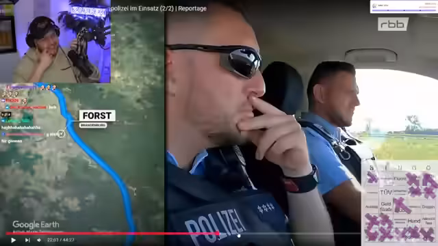 05:42:13Der Streamer freut sich über ein Bingo und bedankt sich für eine Spende. Er kommentiert eine Szene, in der Polizisten den Verkehr beobachten und ein Auto kontrollieren. Er macht ironische Bemerkungen über Schwarzarbeit und kommentiert die Sprachbarriere bei der Kontrolle. Der Streamer scherzt über seine früheren Bingo-Spiele und wie er dafür kritisiert wurde. Er setzt seine ironischen Kommentare über Geld und teure Marken fort und spielt mit dem Gedanken, wie diese Aussagen ohne Kontext auf TikTok aufgenommen werden könnten. Er imitiert mögliche Kommentare über seine angebliche Abgehobenheit.