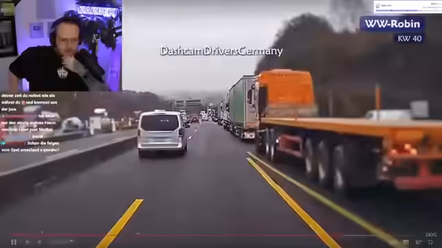 03:47:01Es werden weitere Verkehrsunfälle im Dashcam-Video kommentiert. Der Streamer kritisiert das Fehlverhalten von Personen nach einem Unfall, wie das Nichtabsichern der Unfallstelle und das Nichtinformieren der Polizei. Er erinnert sich an das Auto seines Vaters, einen Ford Mondeo, und verbindet damit Kindheitserinnerungen. Er fragt nach klassischen Autonamen. Der Streamer erzählt, dass sein Vater früher viele verschiedene Autos hatte. Er plant, ein Mustang-Video mit seinem Vater zu drehen. Es werden Verkehrssituationen gezeigt, in denen die Polizei beteiligt ist, darunter das rechts Überholen auf Anweisung der Polizei. Es wird über das Verhalten von Hermes-Fahrern und deren Umgang mit Paketen gewitzelt. Der Streamer kommentiert das rücksichtslose Verhalten eines Autofahrers, der aus einer Einbahnstraße kommt. Er betont die Wichtigkeit, bei nasser Fahrbahn vorsichtig zu sein und den Bremsweg nicht zu unterschätzen.