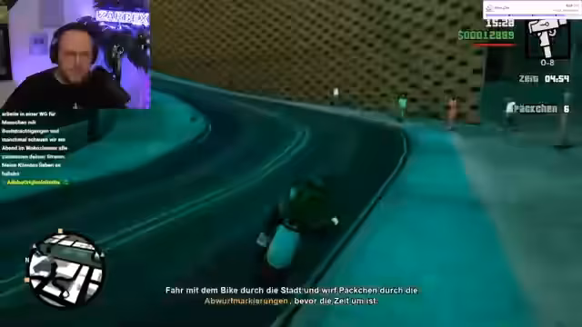04:46:57Es wird beschlossen, sich der als schwierig geltenden Zero-Mission zu stellen und den Laden von Zero zu kaufen, um in Immobilien zu investieren. Nach dem Kauf des Ladens werden die Angestellten bedroht, falls etwas gestohlen wird. Ein Zuschauer-Call empfiehlt den Kauf einer Desert Eagle. Im Laden steht ein Regal mit der Aufschrift 'Grand Theft Auto Y City', was als Plot-Twist wahrgenommen wird. Die Zero-Mission entpuppt sich als schwierig, insbesondere mit Controller, da die kleinen Pixel schwer zu erkennen sind. Nach erfolgreichem Abschluss der Mission ist der Streamer erschöpft und seine Hände krampfen. Er gesteht, dass viele Spieler das Spiel wegen dieser Mission nicht durchgespielt haben. Es wird eine CJ-Mission gestartet, in der eine Rentnerin ihres Autos beraubt wird. Nach dem Stress gönnt sich die Figur einen Blowjob von einer Prostituierten und investiert das verdiente Geld in die neue Immobilie. Es folgt eine Mission, in der ein Staatsanwalt verfolgt und Drogen in seinem Auto platziert werden sollen. Nach dem erfolgreichen Abschluss der Mission wird überlegt, ins Fitnessstudio zu gehen, um Muskeln aufzubauen. Nach dem Training im McFit wird ein Unboxing von mitgebrachtem Essen von Julia angekündigt, darunter Krispies mit Sour Cream und Süßkartoffelpommes.
