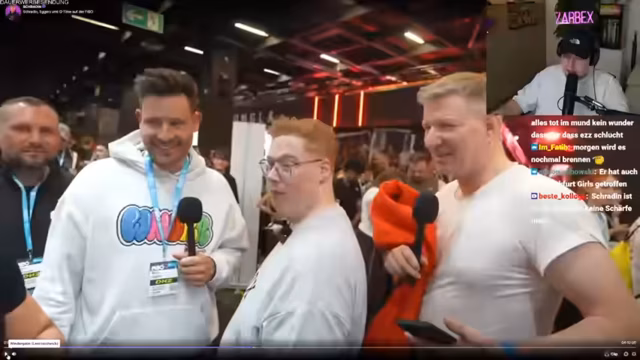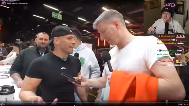 01:17:30Der Streamer erinnert sich an frühere Events bei denen er dabei war, darunter sein erstes Abonnententreffen mit Commander Krieger. Er erzählt auch von einer Begegnung mit anderen Influencern in einer VIP-Lounge, bei der er sich schüchtern fühlte. Des Weiteren spricht er über seine Teilnahme an der Fibo (Messe für Fitness, Wellness & Gesundheit) und einen extrem scharfen Proteinshake, der eine Million Scoville-Einheiten hat.