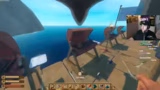 04:23:35Ein großes Schiff in der Ferne wird gesichtet und das Team beschließt, es anzusteuern, um an dessen Loot zu gelangen. Auf dem Weg dorthin wird ein Hai entdeckt, der das Floß bedroht und das Sammeln von Ressourcen im Wasser gefährdet. Es wird ein gemeinsamer Plan gefasst, um den Hai zu töten, da er den Fortschritt behindert. Ein koordinierter Angriff mit Speeren wird eingeleitet, bei dem der Hai trotz seines aggressiven Verhaltens besiegt werden kann.