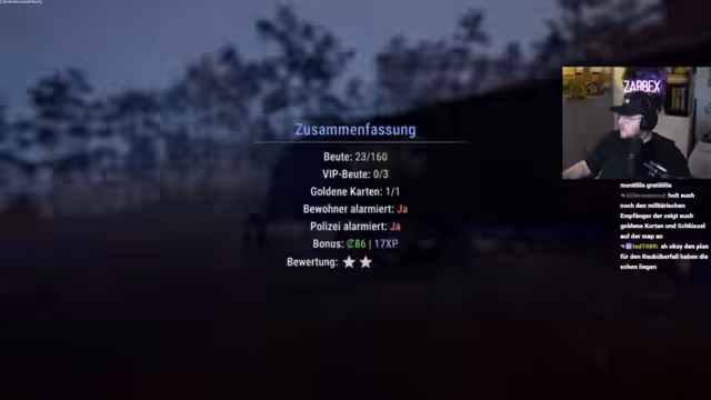 03:00:17Ein entscheidender Versuch, ein großes Bauernhaus systematisch auszurauben, scheitert tödlich. Durch unkoordinierte Aktionen und das Fehlen von Fähigkeiten wie dem Aufschneiden von Jalousien kann nicht eingedrungen werden. Bei einem erneuten Versuch von hinten werden die Spieler von einem Gegner überrascht und ermordet, wodurch sämtliche Ausrüstung und der gesamte Fortschritt verloren gehen. Ein kompletter Neustart mit 'Penner-Taktik' ist nun notwendig.
