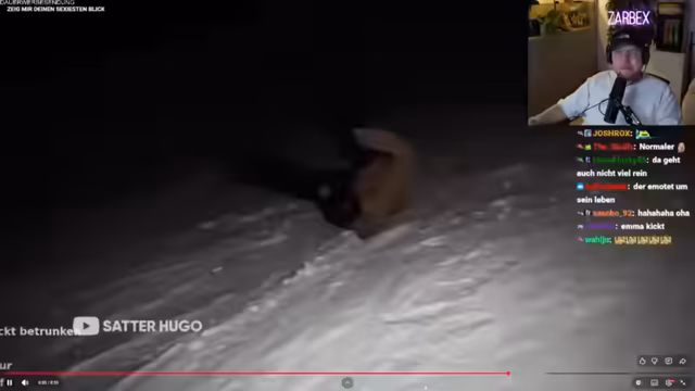 02:36:42Es werden sehr vulgäre und provokante Kommentare über Hugo gemacht, insbesondere über sein Aussehen und Körper. Streamer bezeichnet Hugo als "schmerzbefreit", weil dieser mit vollen Unterhosen herumfingert. Anschließend wird ein "Satter Hugo"-Video gespielt, in dem Hugo nach einem Unfall verletzt ist. Streamer fährt fort, über die teure Rechnung für den Snowtrip und Hugo zu sprechen, die seine Mutter zurückgezogen hat, da sie als Betrugsfall eingestuft wurde.