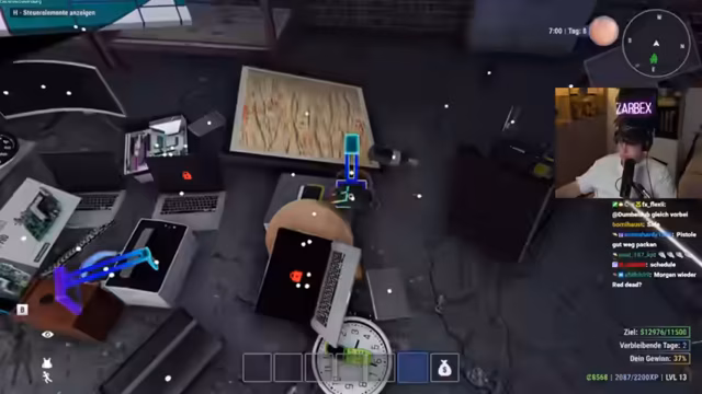 03:35:31Das Team versucht einen weiteren Raubzug auf eine Garage, um wertvolle Teile wie Autoschlüssel und -bohrer zu erbeuten. Das Vorhaben scheitert jedoch, da die notwendige Fähigkeit 'Autodiebstahl' noch nicht erlernt wurde und der Kauf des teuren Bohrers nicht möglich ist. Trotz des Misserfolgs bleibt die Stimmung entspannt, und es wird über die Beute des erfolgreichen Runs, darunter ein Gaming-PC, gesprochen und diese aufgeteilt. Die Getränkepausen und der Humor des Streamers dienen als Puffer zwischen den gescheiterten Missionen.