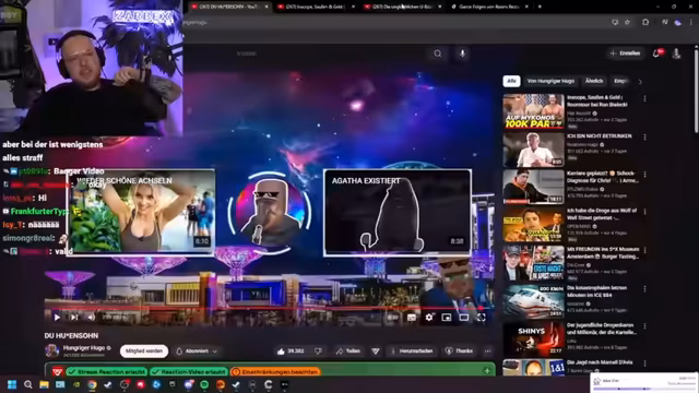 02:41:49Nach einer Pause geht der Streamer zum eigentlichen Kern des Formats über: dem Anschauen von Videos. Er reagiert auf eine weitere Folge 'Frank Rosin aus der Zentrale', spielt Bingo mit dem Chat und zeigt ein Dashcam-Video, bei dem es um riskantes Überholen auf einer Autobahn geht. Die Reaktion auf die rücksichtslose Fahrweise weist eine sehr emotionale und aggressive Seite des Streamers auf, der den Verursacher als 'vollumfängliche Inkompetenz und Vollverblödung' bezeichnet, während der Chat amüsierter Reaktionen spendiert.