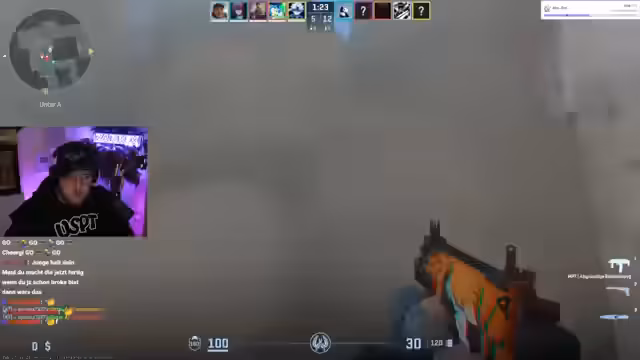 05:44:04Das Spiel beginnt mit einer Messerrunde, in der das Team die Seite wählt und sich für CT entscheidet. Es werden Positionen zugewiesen und ein B-Rush geplant, der jedoch fehlschlägt. Ein Spieler erzielt starke Schüsse, aber das Team verliert die Runde. In den folgenden Runden wird die Strategie angepasst, es wird ein A-Rush versucht, der jedoch ebenfalls scheitert. Das Team gerät in eine Sparrunde, da das Geld knapp ist. Es wird überlegt, ob man erneut einen A-Rush spielen soll oder ob man einen Fake versucht und stattdessen B angreift. Die Bombe wird schließlich auf B platziert. In einer wichtigen Runde wird die Mitte abgesmoked und ein schneller Angriff auf B geplant. Trotzdem gibt es Schwierigkeiten und das Team gerät in eine schwierige Lage, da die Gegner die Positionen der Spieler genau zu kennen scheinen.