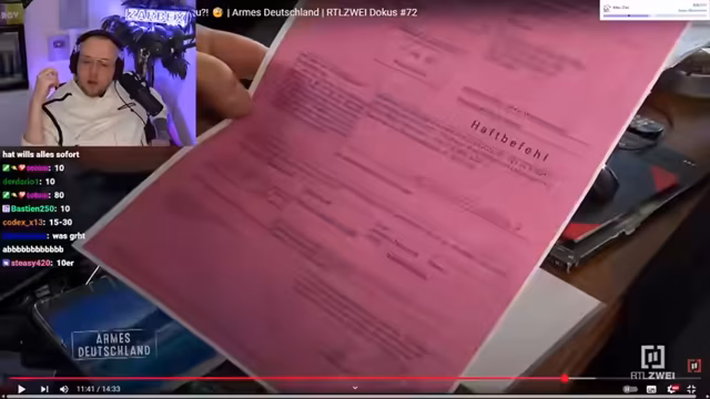 02:05:58Zarbex und Julia sind beeindruckt davon, dass Carola einen Ordner mit Klarsichtfolien für ihre Unterlagen führt. Julia erzählt, dass sie ohne ein Ordnersystem von ihr bereits Steuerschulden hätte. Sie diskutieren über Carola's Schulden und die Möglichkeit einer Haftstrafe. Zarbex fragt sich, wie lange sie für 800 Euro ins Gefängnis müsste und ob es ihr vielleicht sogar guttun würde, um vom Crack wegzukommen. Sie sprechen darüber, dass sie wegen Schwarzfahrens eine Geldstrafe bekommen hat und den Überblick über ihre Straftaten verloren hat. Zarbex und Julia kritisieren, dass Carola immer die anderen für ihre Situation verantwortlich macht und keine Selbstreflexion zeigt. Sie diskutieren über Carola's Brief an das Amt und ihre Versuche, die Sache unbürokratisch zu regeln.