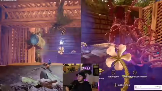 05:22:14Das Duo entdeckt im Spiel einen Gartenlevel und kommentiert humorvoll die dortigen Pflanzen und Werkzeuge, inklusive Pestizide und einer Sichel. Es folgen scherzhafte Anspielungen auf "Golden Shower" und die Zerstörung von Unkraut. Die Spielfiguren interagieren mit verschiedenen Pflanzen, darunter auch Cannabis, was zu witzigen Dialogen führt. Die Spieler genießen die gemütliche Atmosphäre des Spiels und freuen sich auf die kommende gemütliche Jahreszeit. Es werden Pusteblumen entdeckt und es wird versucht, diese zu erreichen. Ein Gewächshaus wird als völlig überwuchert beschrieben und der Wunsch nach gemeinsamer Gartenarbeit wird geäußert. Im weiteren Verlauf werden skurrile Entdeckungen gemacht, wie ein "Kaktusschwanz" am Arsch einer Spielfigur, was zu humorvollen Missverständnissen und Klarstellungen führt. Es wird gedüngt und gegossen, und die Spielfiguren verwandeln sich in Pflanzen.