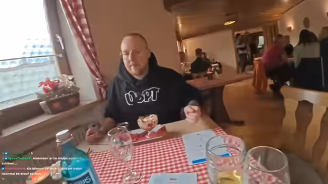 02:57:11Die Testesser-Phase ist erfolgreich abgeschlossen. Der Streamer plant, sich noch ein weiteres Bier zu bestellen, bevor er und sein Begleiter den Abend im Hotel verbringen. Sie planen, in die Hotelbar zu gehen und danach vielleicht noch in die Sauna. Der Streamer ist überaus zufrieden mit dem 'tiefsenspannten' und nach seinem Geschmack 'geilen' IRL-Stream, auch wenn es zunächst stressig wirkte. Er gibt dem Chat ein Dankeschön und freut sich auf zukünftige Events, wie die Gamescom, bei der er bestimmte Leute wiedersehen möchte.