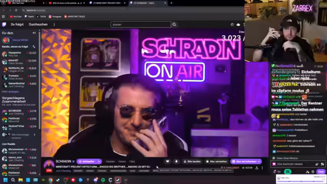 01:43:46Der Streamer und sein Freund Schradin bereiten sich auf ihren Auftritt in der Reality-Show Big Brother vor. Sie scherzen über ihre mögliche Unterbringung im 'armen Bereich' mit schlechten Bedingungen während der Kälteperiode. Der Streamer plant, falls es ihm zu übel wird, heimlich mit Schradin in dessen Auto zu flüchten. Gemeinsam mit anderen Streamern wie Monte und Trimax planen sie zudem ein gemeinsames Projekt bei Craft Attack, bei dem sie in einer Wüste bauen wollen.