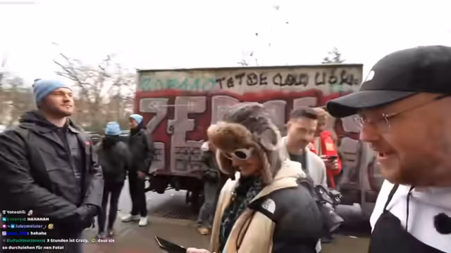 00:34:47Der Streamer erreicht die Hermannstraße 14 in Berlin, wo das Praktikum stattfindet. Er ist gespannt, wie viele Leute bereits vor Ort sind und freut sich, dass schon einige Zuschauer da sind. Er kündigt an, dass sie Nüsse glasieren, Snacks zubereiten und an die Fans verteilen werden, und dass es auch Zeit für Fotos geben wird. Eine besondere Überraschung ist das zufällige Treffen mit Cedric, einem alten Bekannten, mit dem er vor über zehn Jahren YouTube-Videos gedreht hat. Cedric, der mittlerweile in Berlin lebt, verrät scherzhaft, dass er jetzt in der Pornobranche tätig ist, was für Erheiterung sorgt. Auch ein weiterer Zuschauer, Torbex, hat sein Essen stehen lassen, um den Streamer zu treffen, was dieser als süß empfindet.