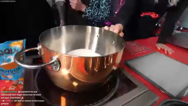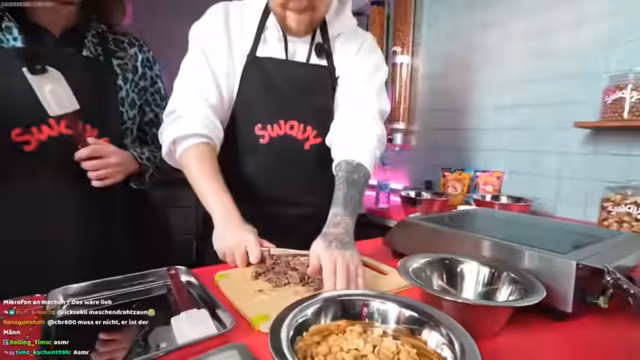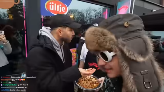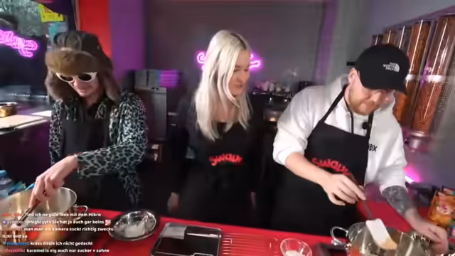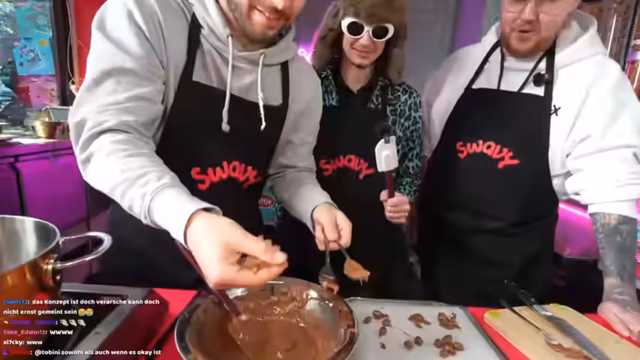 01:52:41Im weiteren Verlauf des Streams widmen sich die Teilnehmer dem kunstvollen Schokolieren von Erdnüssen, wobei verschiedene Techniken und Herangehensweisen ausprobiert werden. Es entspinnt sich eine lebhafte Diskussion über die ideale Anzahl von Erdnüssen pro Schicht und die richtige Konsistenz der Schokolade. Ein Teilnehmer demonstriert eine einzigartige „Schaufeltechnik“, die als innovativ und talentiert beschrieben wird, um die Erdnüsse gleichmäßig mit Schokolade zu überziehen. Dabei wird humorvoll angemerkt, dass zu viel Schokolade zwar von einem Teilnehmer favorisiert wird, jedoch dem gewünschten ästhetischen Ergebnis eines „Berges“ statt einzelner, sauber überzogener Nüsse entgegensteht. Die Herausforderung, die Erdnüsse einzeln und ansprechend zu gestalten, wird als wahre Kunst hervorgehoben. Zusätzlich wird die geschmackliche Kombination von salzig und süß, insbesondere bei Erdnüssen, als „brutal geil“ gelobt, was die Vorliebe für diese Geschmackspaarung unterstreicht. Die Teilnehmer experimentieren weiter mit verschiedenen Methoden, um die perfekte Schokoladen-Erdnuss-Kreation zu erzielen, wobei auch Brezeln schokoliert werden und als „krass“ und „insane“ bezeichnet werden.