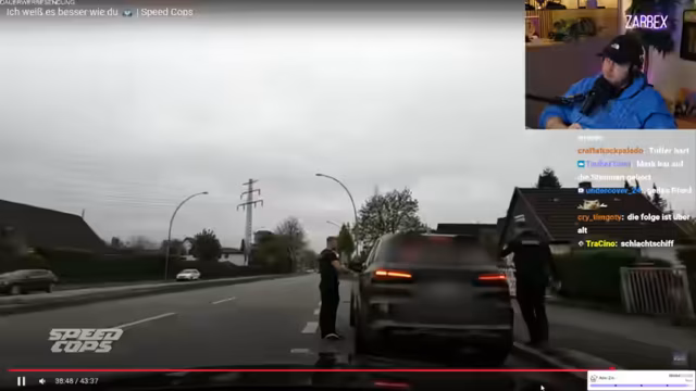 01:04:10Während des Speedcops-Streams analysiert der Streamer die Fahrzeugkontrollen aus der Serie. Er vermerkt Bingo-Felder wie 'eingetragene Teile', 'Tuning-Sticker' und 'BMW'. Zwischen den Clips teilt er Anekdoten, wie zum Beispiel die Erinnerung an den getunten Opel Vectra seines Vaters. Er gibt auch Tipps, wie man bei Fahrzeugtuning legal bleibt und bei Kontrollen nicht auffällt, indem man nur sichtbare Teile einträgt und den Rest 'illegal' lässt.