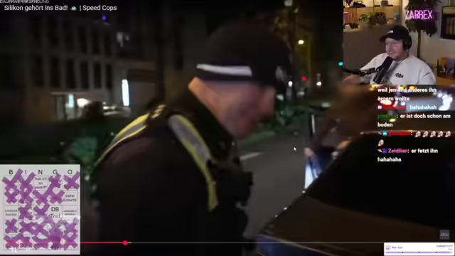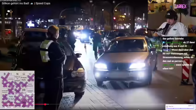 01:25:52Es wird eine neue Folge von Speedcops angekündigt und ein Bingo-Spiel mit den Zuschauern gestartet. Es geht um getunte Autos, Tuning-Sticker und Polizeikontrollen. Der Streamer erwähnt, dass Speedcops eines seiner Lieblingsformate auf YouTube ist und er auch die Trödeltrupp-Serie mag. Die Zuschauer beteiligen sich aktiv am Bingo-Spiel und spenden fleißig. Der Streamer bedankt sich für den Support und freut sich über die vielen Subs. In der Sendung sind Polizisten Rasern und Posern auf den Fersen. Ein Autofahrer beschleunigt stark und wird von der Polizei verfolgt. Er fährt über 100 km/h in einem Wohngebiet und gefährdet Fußgänger und E-Roller-Fahrer. Der Fahrer muss seinen Führerschein abgeben. Am Fernsehturm in Stuttgart trifft sich regelmäßig die Tuning-Szene. Die Polizei kontrolliert die Fahrzeuge und stellt fest, dass ein Auto Tuning-Sticker auf der Windschutzscheibe hat. Eine Fahrerin hat rund 10.000 Euro in die Umbauten ihres Autos gesteckt. Sie darf die Folie noch auf dem Treff präsentieren, muss sie aber danach entfernen.