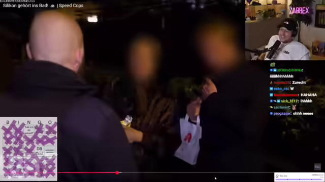 Zarbex startet nach einem langen Stream mit Reactions auf Tomatolix' Razzia im Bahnhofsviertel und Speedcops. Es folgen Diskussionen über Mathefrust, Schulerinnerungen und Zukunftspläne mit Minecraft. Der Streamer teilt seine Begeisterung für Minecraft, Kindheitserinnerungen und begleitet die Polizei im Frankfurter Bahnhofsviertel, wo er über Waffenverbotszonen, Polizeikontrollen, Cannabis Legalisierung und Alltagseindrücke spricht. Er erlebt eine Konfrontation mit einem Wildpinkler und begleitet eine Razzia mit Drogenfunden.