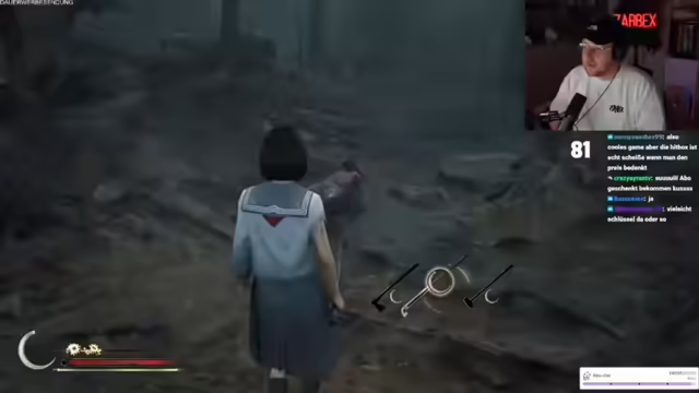 02:45:01Er erreicht eine private Zuflucht, wo er auf Charaktere trifft, die er zuvor in seinem Traum abgeschnetzelt hat. Er interagiert mit einem Schrein, um seine Fähigkeiten zu verbessern, wobei er sich auf Gesundheit konzentriert. Anschließend findet er einen Metalltor-Schlüssel, der ihm den Weg zu neuen Gebieten öffnet. In diesen neuen Gebieten trifft er auf einen schnellen und gefährlichen Gegner, dem er kaum Schaden zufügen kann. Er tauscht seine Waffe gegen eine Brechstange aus, in der Hoffnung, effektiver zu sein. Bei der weiteren Erkundung gerät er in Schwierigkeiten und stirbt zum ersten Mal im Spiel, nachdem er in eine Sackgasse gerannt ist. Frustriert über die Babypuppen-Gegner und das Ausdauersystem des Spiels, setzt er seine Reise fort und findet verschiedene Items. Er äußert seine Neugier auf die Story des Spiels und die Rolle seiner Verräterfreunde. Er erreicht ein Haus am Ende der Welt, wo er auf verschlossene Türen und Hinweise auf Drogenprobleme stößt. Er findet einen Schlüssel zu Schuhs Haus und ein Rezept für seinen Partner, was weitere Einblicke in die Hintergrundgeschichte der Charaktere gibt.