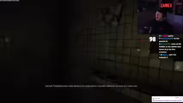 04:30:58Der Stream beginnt mit dem Vorlesen eines Briefes eines Vaters an seinen Sohn John, in dem er seine Liebe und seinen Stolz ausdrückt. Er spricht über seine Enkelkinder Luca und Chanel und enthüllt, dass er nun an Gott und Satan glaubt. Er gesteht, dass Johns Mutter nicht krank war, sondern von einer realen, aber unerklärlichen Krankheit namens 'Blue Knees' betroffen war. Nach dem Brief startet das Horrorspiel, das sich als extrem beängstigend und nervenaufreibend erweist. Der Streamer äußert mehrfach seinen Wunsch, das Spiel so schnell wie möglich zu beenden, da es ihn stark belastet. Er bedankt sich für eingehende Subs und erwähnt, dass ein bestimmtes Teil für die Kuckucksuhren benötigt wird. Der Streamer schwitzt stark und findet die Situation sehr unangenehm und ekelhaft.