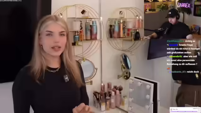 00:19:02Es entbrennt eine Diskussion darüber, warum der Streamer nach dem Polaris-Event nicht einfach duschen gegangen ist, um das Make-up zu entfernen. Er erklärt, dass er es hasst, zweimal am Tag zu duschen, da dies Zeitverschwendung sei. Seine Freundin Julia musste ihn stattdessen abschminken, was er als einen von drei Schlüsselmomenten in ihrer Beziehung beschreibt, die sie zusammengeschweißt haben. Die anderen beiden Momente waren eine Lebensmittelvergiftung, bei der Julia ihn versorgte, und der Zeitpunkt, als er begann, mit offener Tür vor ihr zu urinieren. Julia ergänzt, dass auch das gemeinsame Erleben eines Hotelzimmers mit einer gläsernen Toilettenwand, bei dem sie sich über die mangelnde Privatsphäre wunderten, ein verbindendes Element war. Sie erwähnt auch, dass sie oft als Ausrede benutzt wird, um dem Streamer unliebsame Verabredungen oder Aktivitäten zu ersparen, indem sie ihm 'verbietet', länger wegzubleiben.