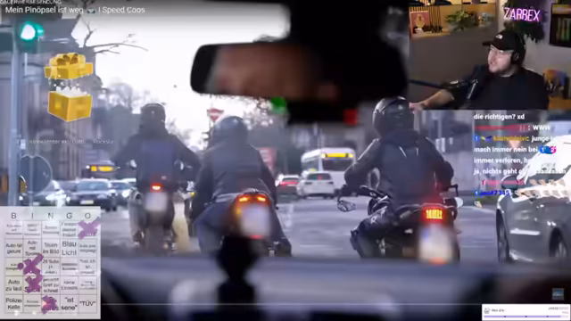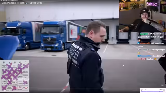 03:27:12Nach einer persönlichen Anekdote über den gestrigen Abend und den Konsum von Pizza beginnt der Streamer mit dem Speedcops-Bingo-Spiel. Er moderiert die Runde interaktiv mit seinem Chat, wo Zuschauer durch Spenden oder Subs Felder des Bingokartes freischalten können. Er beschreibt die Fahrzeugkontrollen und die Jagd auf auffällige Fahrer, insbesondere Motorräder, während er die Ereignisse kommentiert und mit dem Publikum interagiert.