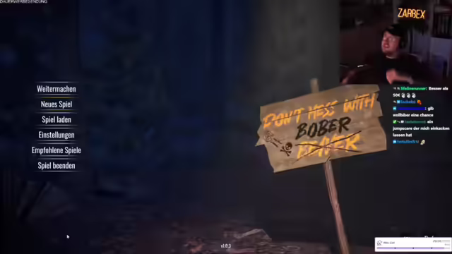 04:55:44Das Horror-Game 'Don't Mess With Boba' wird gestartet. Es handelt sich um ein Mini-Trash-Indie-Horror-Game, bei dem der Spieler in einer Waldhütte ist und gegen einen vom Teufel besessenen Biber namens Boba antreten muss. Das Gameplay soll etwa ein bis anderthalb Stunden dauern. Die Atmosphäre wird durch das Ausschalten des Lichts im Stream und die Beschreibung des Ziels, den Biber und seinen Damm zu zerstören, verstärkt. Der Streamer bereitet sich auf mögliche Jumpscares vor und ist gespannt, was ihn erwartet.