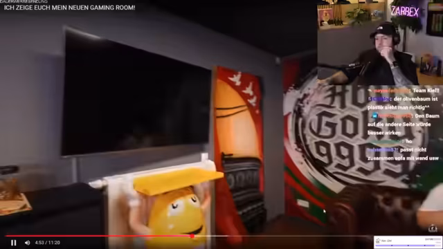 02:28:28Der Streamer präsentiert sein neu eingerichtetes Streaming-Zimmer, das er komplett selbst gestaltet hat. Das Zimmer im Vintage-Oldschool-Stil ist eine persönliche Sammlung mit hoher emotionaler Bedeutung. Er zeigt auch sein technisches Setup, darunter einen OLED-Monitor, einen neuen Mikrofonarm und einen von Elgato gesponserten Schreibtisch. Das Setup ist funktional, aber auch ästhetisch geprägt, im Gegensatz zu einer reinen Greenscreen-Lösung.