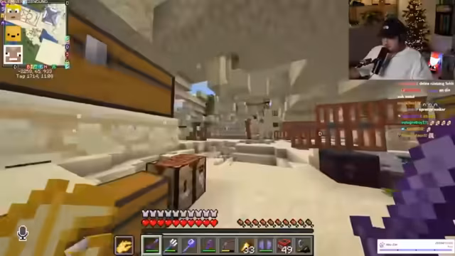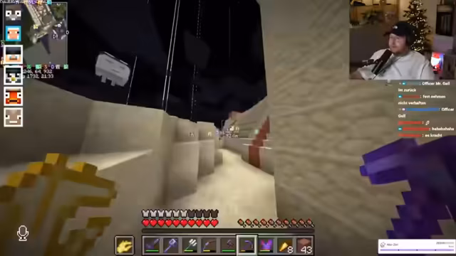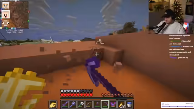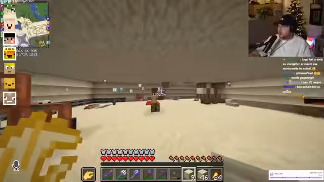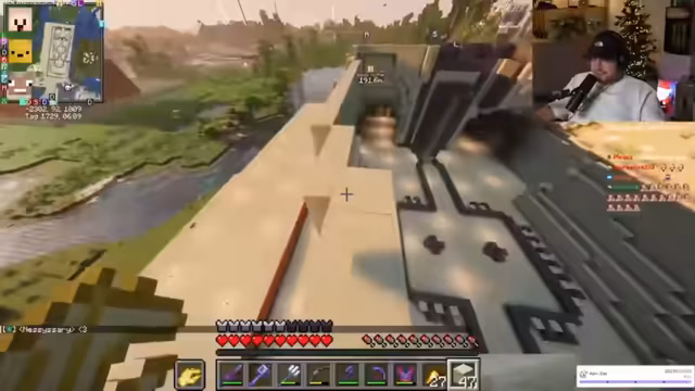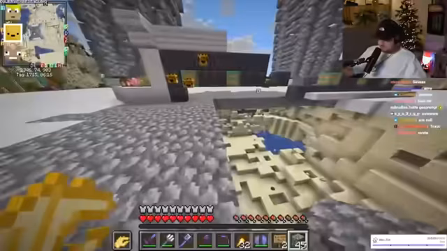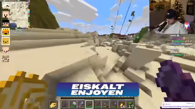 10:14:21Die Diskussion über das Bauprojekt der Sphinx nimmt eine neue Wendung, als vorgeschlagen wird, einen Villager-Kopf zu bauen, während der Körper parallel dazu entsteht. Der Kopf soll aus Sandstein gefertigt werden, um zur restlichen Statue zu passen, obwohl die ursprüngliche Idee braune Blöcke vorsah. Es wird eine grobe Struktur für den Rücken festgelegt, um die Orientierung zu erleichtern. Während des Baus kommt es zu technischen Problemen mit dem Desktop, die schnell behoben werden. Ein Gast im Stream, Feister, erkundigt sich nach dem aktuellen Projekt und erfährt, dass eine Sphinx gebaut wird, die jedoch improvisiert einen Villager-Kopf erhalten soll, um Zeit zu sparen. Die Idee, eine Orbitalkanone zu bauen, wird kurz angesprochen, aber schnell verworfen. Die Größe der Sphinx wird als beachtlich beschrieben, und die Entscheidung, einen Villager-Kopf zu integrieren, wird als kreative Improvisation dargestellt, um das Projekt schneller abzuschließen.