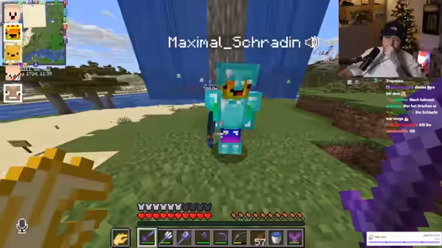 07:32:32Schradin versucht erneut, die Situation mit TNT zu eskalieren, indem er einen Sprengversuch unternimmt, um Kohle abzubauen, was von den anderen Spielern als Sabotageakt interpretiert wird. Der Streamer und seine Mitspieler zeigen sich empört über Schradins Handlungen, der behauptet, er wolle lediglich in Ruhe arbeiten und die anderen sollten Abstand halten, da es gefährlich sei. Trotz seiner Beteuerungen, niemanden verletzen zu wollen, zündet Schradin kurz darauf weiteres TNT, was die Spannungen weiter erhöht. Die Mitspieler fordern ihn auf, sein TNT abzugeben, um weitere Eskalationen zu vermeiden. Schradin weigert sich jedoch und versucht, die Situation mit Gegenforderungen zu seinem Vorteil zu nutzen, wie etwa der Forderung nach einer goldenen Möhre im Austausch für ein TNT. Die Diskussion dreht sich immer wieder um Schradins mangelnde Kooperationsbereitschaft und seine wiederholten Versuche, die anderen Spieler zu provozieren, während er gleichzeitig beteuert, er wolle nur in Ruhe gelassen werden und arbeiten.
