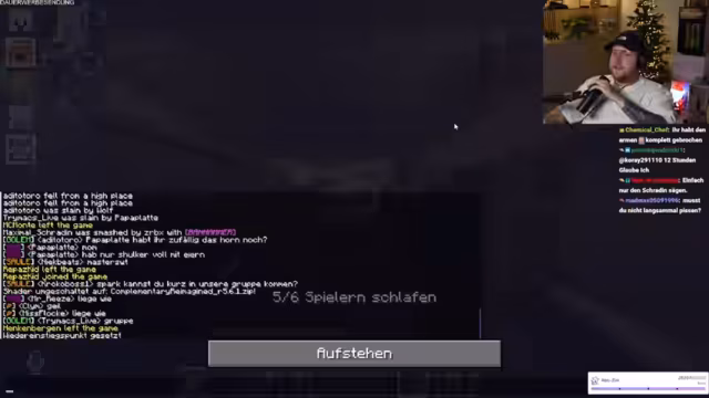 07:05:59Die Situation eskaliert weiter, als ein Spieler plant, eine Fackel TNT zu zünden, um seine Drohungen wahr zu machen. Er bedankt sich für den Support und die Subs, erwähnt aber, dass er eigentlich entspannt sein und sich mit 'Trimax' gegen 'GHG' verbünden wollte. Stattdessen sei er in eine Falle getappt und alles sei explodiert, was er jedoch als 'extrem lustig' empfindet. Es wird eine Verfolgungsjagd eingeleitet, bei der ein Spieler versucht, seine Koordinaten zu verbergen, um nicht gefunden zu werden. Die anderen Spieler versuchen, ihn zu orten und seine Pläne zu durchkreuzen. Es wird spekuliert, ob der Spieler 'smart' genug ist, seine Spuren zu verwischen, oder ob der Chat ihm dabei hilft. Die Spannung steigt, da ein großer Knall erwartet wird, der den gesamten Server erschüttern soll. Die Spieler sind gespannt, was als Nächstes passieren wird, und die Atmosphäre ist von Nervosität und Vorfreude geprägt.