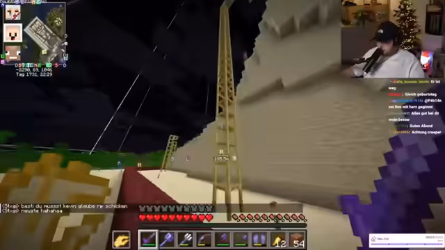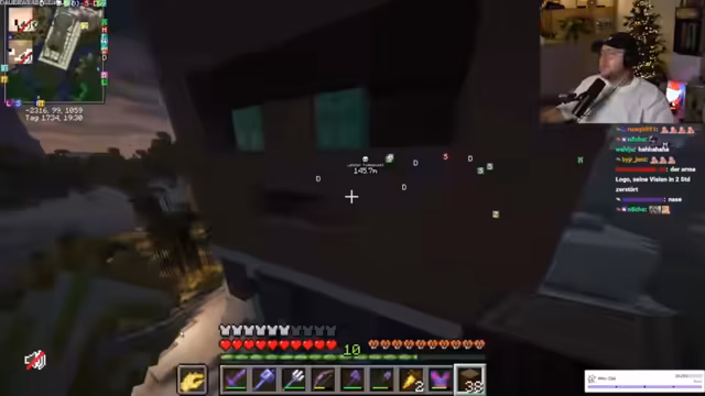 10:26:26Der Streamer teilt persönliche Erfahrungen und Meinungen, die sich auf den Spielverlauf und die Interaktion mit der Community beziehen. Es wird über die Stabilität der Internetverbindung gesprochen, die während des zehnstündigen Streams stabil war, im Gegensatz zu früheren Problemen mit OBS. Die Community versucht, den Streamer durch 'Ragebaiting' zu provozieren, indem sie technische Probleme vortäuscht. Es wird über die Möglichkeit gesprochen, OBS downzugraden, um zukünftige Verbindungsprobleme zu vermeiden. Persönliche Geburtstage werden erwähnt, und es kommt zu einem Missverständnis, bei dem die Community dem Streamer zum Geburtstag gratuliert, obwohl er keinen hat. Die Idee eines Shops in Minecraft wird diskutiert, um Diamanten effektiver zu farmen. Es wird auch über die Möglichkeit gesprochen, eine Sphinx mit einem Villager-Kopf zu bauen, um das Projekt schneller abzuschließen. Die Einführung von Phantomen in Minecraft wird kritisiert, da sie als nervig und nutzlos empfunden werden. Ein Raid von 'Pablo Diablo' wird begrüßt, und es wird über den Bau der Sphinx mit Villager-Kopf gesprochen, die als 'katastrophal hässlich' beschrieben wird.