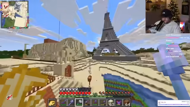 05:37:03Die Diskussion beginnt mit der Fertigstellung einer Statue in Minecraft, wobei der Ersteller Schwierigkeiten beim Nachbauen von Vorlagen äußert. Kurz darauf eskaliert ein Streit um zerstörte Minecraft-Basen. Es wird behauptet, dass Noisy und Zabex den Eiffelturm von Schradin gesprengt hätten, was Zabex jedoch bestreitet. Die Situation wird als 'Fitna' (Unruhe stiften) bezeichnet, und es entsteht eine hitzige Debatte darüber, wer für die Zerstörung verantwortlich ist. Zabex erklärt, dass der Eiffelturm lediglich Kollateralschaden erlitten habe, da das eigentliche Ziel Noisy's Geheimbasis unter dem Turm war. Schradin droht daraufhin mit Gegenangriffen, sollte sein Turm weiter beschädigt werden, und es wird über die Regeln des Spiels sowie mögliche Konsequenzen, wie eine 24-stündige Spielsperre, diskutiert.
