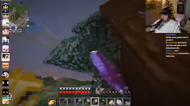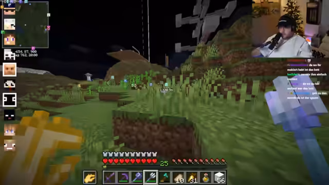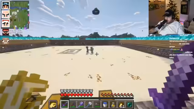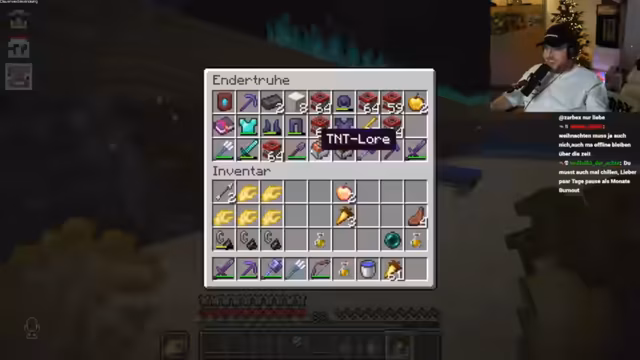 09:48:57Die Konzentration verlagert sich auf die Jagd nach wertvollen Gegenständen wie Netherit-Rüstungsteilen. Mehrere Spieler tauschen sich über den Verbleib von Items aus und organisieren, wer welche Ausrüstung sammeln oder abgeben soll. Der Streamer schlägt einen Treffpunkt vor, um die gefundenen Gegenstände zu verteilen, was jedoch zu Misstrauen führt. Ein Nutzer äußert den Wunsch, eine Ender-Chest zu erhalten, um seine Ressourcen zu sichern.
