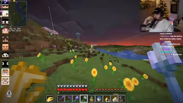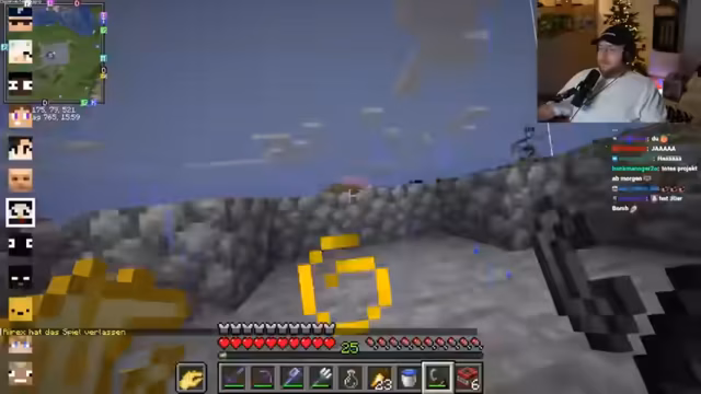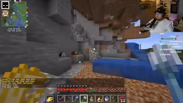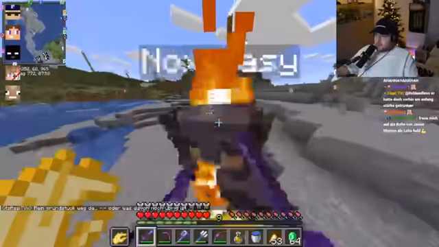 09:44:52Die Aktivitäten im Spiel drehen sich um zahlreiche Kämpfe, Verrat und das Ausloten von Fängen. Ein Nutzer wird verdächtigt, eine Falle zu bauen, während andere Spieler versucht werden, gefangen zu werden und zu töten. Es wird über die Moralität solcher Aktionen diskutiert und der Streamer sucht nach Koordinaten, um gezielt agieren zu können. TNT-Fallen und eine vorbereitete Explosion thematisiert, wobei der Streamer seine Absicht, einen Berg zu sprengen, mit Genuss beschreibt.